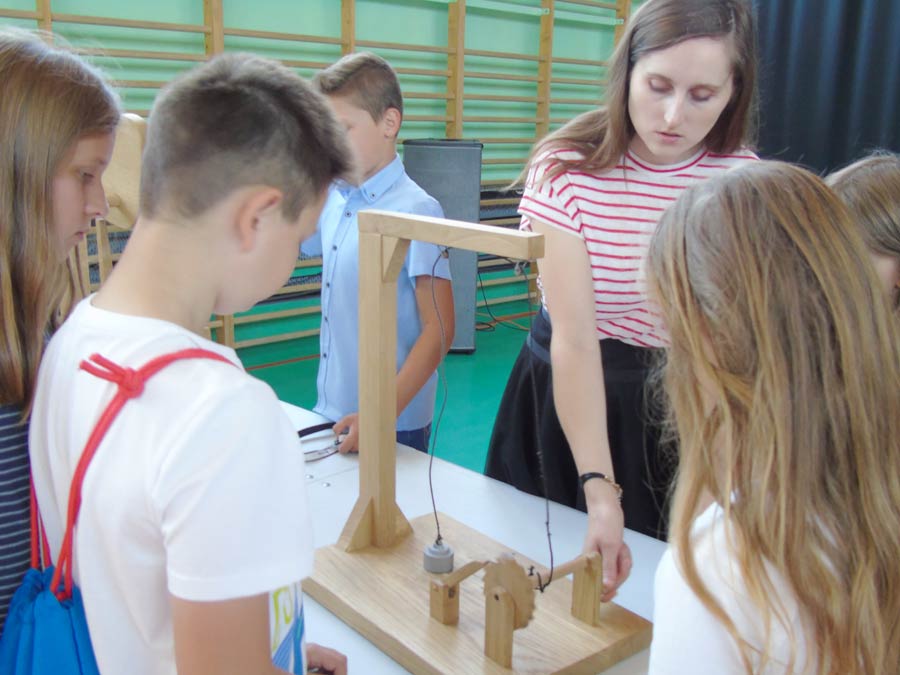 Imprezę rozpoczęły pokazy interaktywne poświęcone wynalazkom Leonarda da Vinci, dzięki którym uczniowie mieli możliwość osobistego sprawdzenia funkcjonowania mechanizmów i urządzeń wynalezionych kilka wieków temu. Po dużej dawce wrażeń dyrektor Justyna Haładyj oficjalnie otworzyła uroczystość oraz powitała uczniów, rodziców i zaproszonych gości, w tym wiceburmistrza Krasnegostawu Edwarda Kawęckiego, sekretarza Krzysztofa Gałana, przewodniczącego rady miasta Janusza Rzepkę, radnych: Monikę Podolak i Stanisława Dębskiego, prezesa Zarządu Banku Spółdzielczego w Izbicy Marcina Wojewodę oraz przewodniczącą Rady Rodziców Karolinę Winiarczyk.