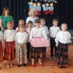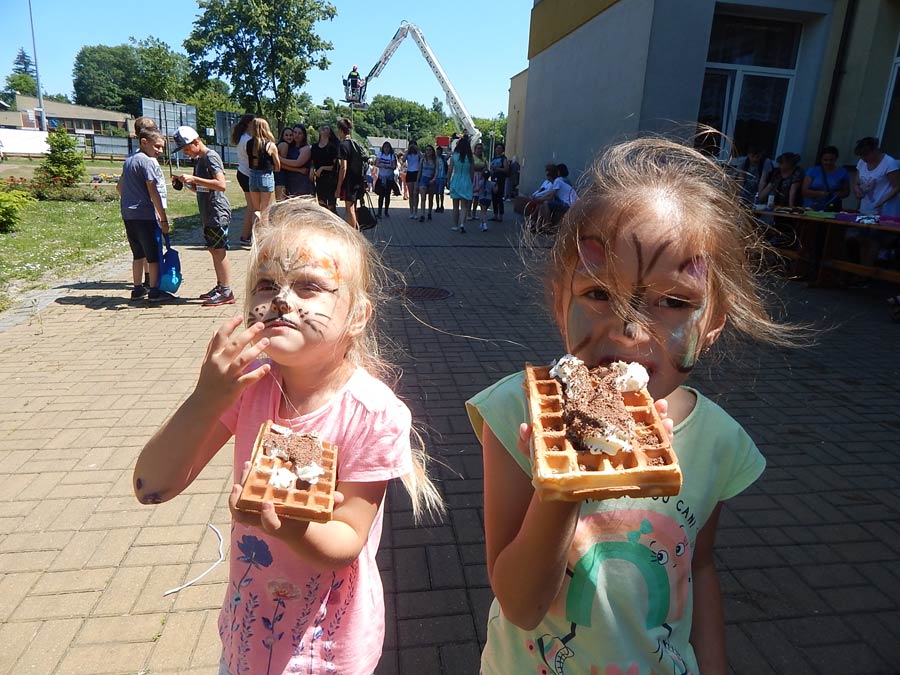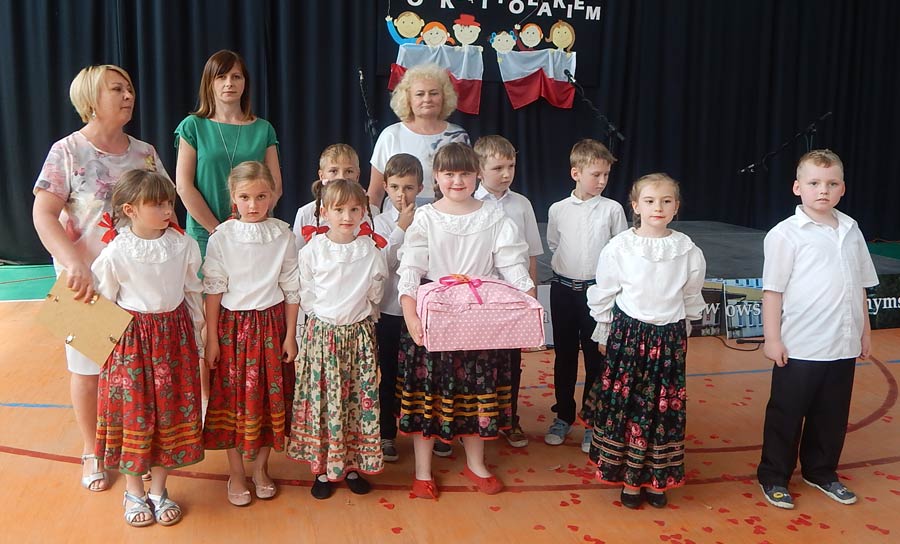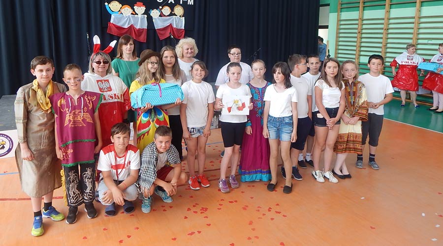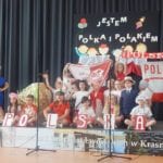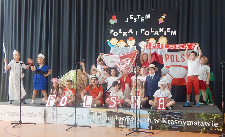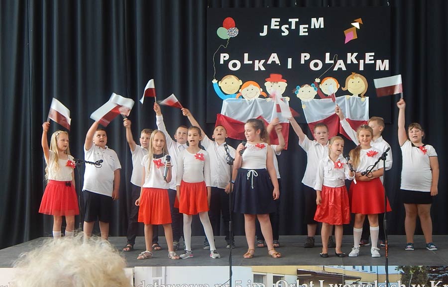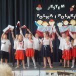 Uczniowie i dzieci pod kierunkiem wychowawców przygotowali i przedstawili piosenki i scenki nawiązujące tematycznie do hasła festynu: „Jestem Polką, jestem Polakiem”. Podczas imprezy można było odwiedzić kiermasz przygotowany przez rodziców, na którym znalazły się pyszne ciasta, kiełbaski z grilla, gofry i wata cukrowa. (k)