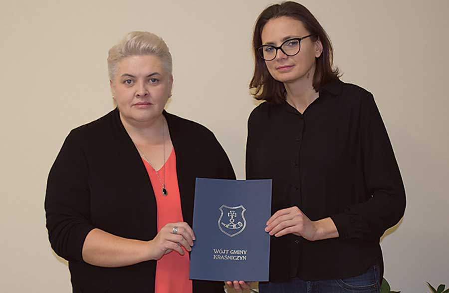 Wójt gminy Kraśniczyn Monika Grzesiuk wręczyła akt powołania dyrektor Domu Kultury w Kraśniczynie. Została nią Marta Zorska-Swatowska, znana krasnostawska animatorka i działaczka społeczna.