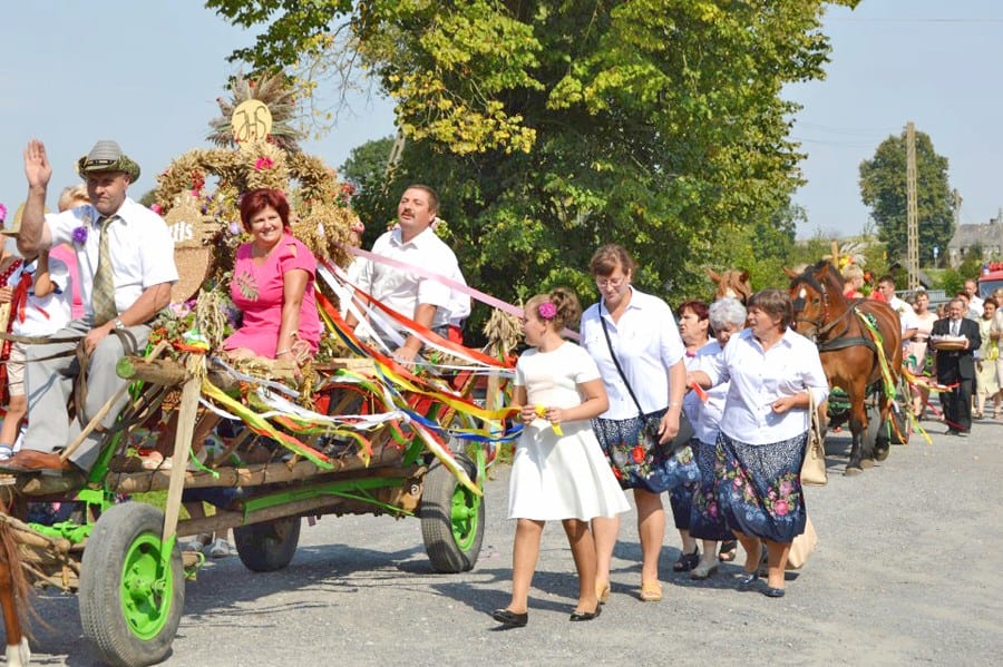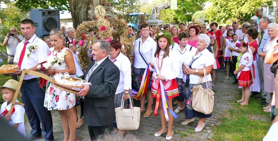 Dziękując za tegoroczne plony mieszkańcy utworzyli barwny korowód z wieńcami. Cały orszak prowadził ciągnik z dużą tablicą informującą o dożynkach. Nie zabrakło starostów dożynek, na których wybrano Sabinę i Tomasza Mydlaków – młodych rolników z miejscowości Mościska. Aby tradycji stało się zadość do przewiezienia wieńców wykorzystano zaprzęgi konne, które okazały się dużą atrakcją zarówno dla dzieci jak i przybyłych gości. Nad organizacją uroczystości czuwali członkowie stowarzyszenia „Gospodynie na straży” z Płonki. Dożynkowe wieńce zostały przygotowane przez panie z KGW: Płonka, Wierzbica, Równianki, Kaszuby oraz z Mościsk. (k)