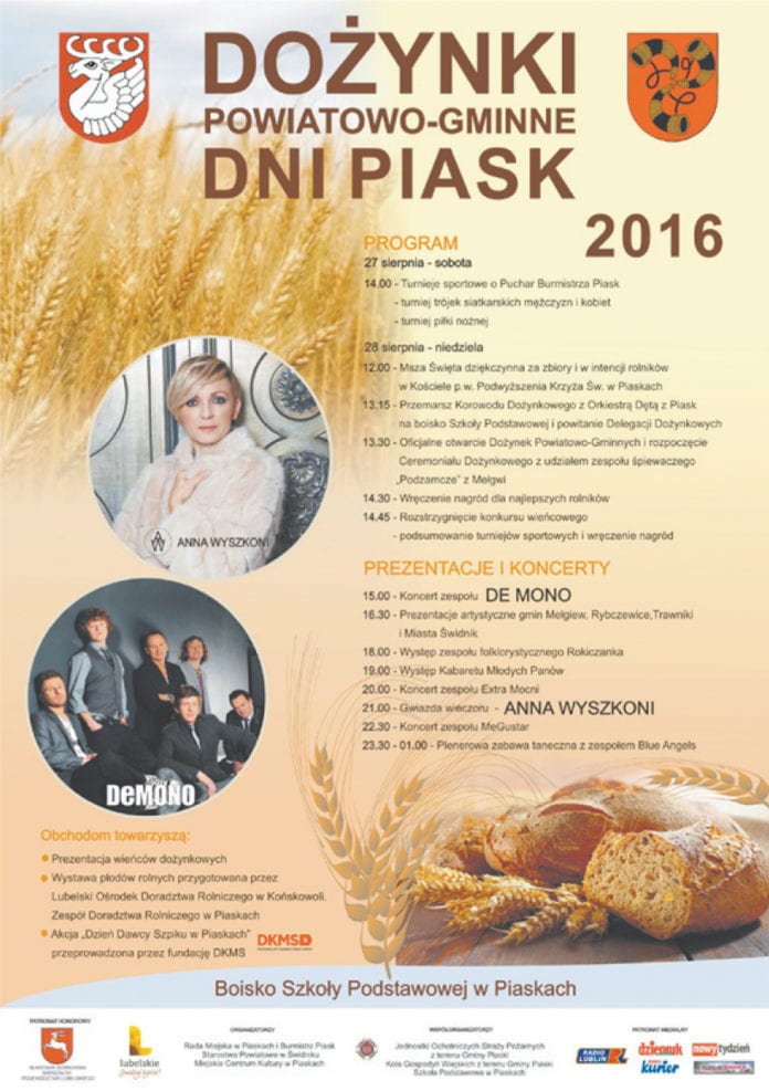 Święto plonów będzie połączone z „Dniami Piask”. Z tego powodu wydarzenie zostało zaplanowane na dwa dni.