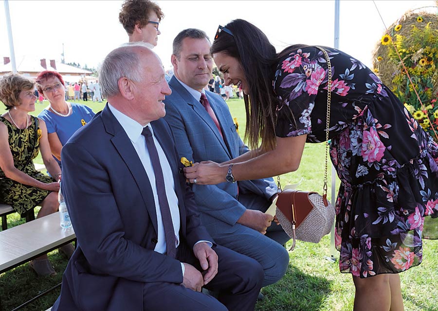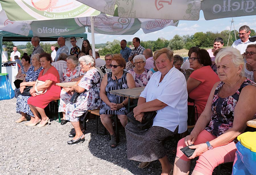 Po mszy polowej, która odbyła się na boisku sportowym, w części oficjalnej głos zabrali wójt gminy Monika Grzesiuk, witając zaproszonych gości oraz m.in. poseł na sejm Lucjan Cichosz. Wręczono odznaczenia „Zasłużony dla Rolnictwa” i rozstrzygnięto dożynkowe konkursy. Ich wyniki podamy za tydzień.