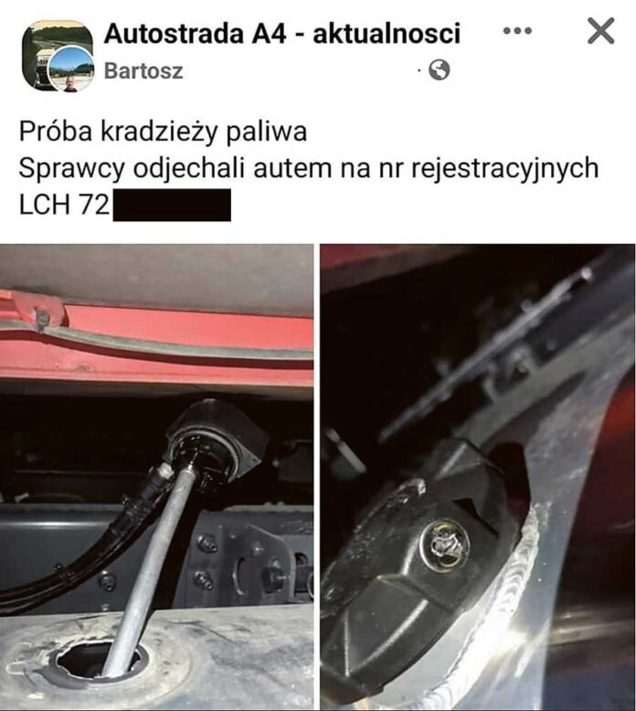 Niedawno jeden z kierowców ostrzegał pozostałych podróżujących przez autostradę A4 o złodziejach paliwa poruszających się autem na rejestracji LCH. Nie jest to jednak przypadek incydentalny, bo drożyzna na stacjach benzynowych sprawiła, że kradzieże paliwa to już niemal plaga.