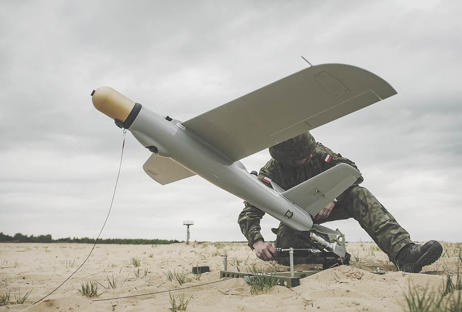System amunicji krążącej Warmate tj. drony uderzeniowe został opracowany przez polskich inżynierów dwa lata temu. Drony łączą w sobie funkcję rozpoznawczą i uderzeniową. Sterowany przez operatora bezzałogowiec lata na wysokości kilkuset metrów. Jego maksymalna prędkość to 150 km na godzinę. Dron porusza się w promieniu 10 km od sterującego nim operatora, a w powietrzu spędzić może kilkadziesiąt minut. Warmate to tzw. dron kamikadze – atakując wybrany cel, rozbija się o niego. Drony kamikadze umożliwiają obserwację okolicy z powietrza i eliminację celu z precyzją. Wojskowi mówią, że drony częściowo mogą zastąpić lekkie moździerze, bo są precyzyjniejsze i łatwiejsze do transportu. (opr. mo, fot. DWOT)