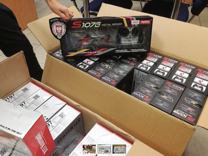 Zabawki warte ponad 920 tysięcy złotych (6264 drony i 144 zdalnie sterowanych helikopterów) trafiły prosto z odprawy w Dorohusku do składu celnego po tym, jak funkcjonariusze zakwestionowali przedstawione przez importera deklaracje zgodności. Zgodnie z podejrzeniami celników i wydanymi naprędce przez Wojewódzkiego Inspektora Inspekcji Handlowej w Lublinie oraz Urząd Komunikacji Elektronicznej opiniami towar może być niebezpieczny dla dzieci (zabawki z Chin nie spełniają norm jakości i nie mogą zostać dopuszczone do obrotu na terenie naszego kraju i całej Unii Europejskiej). (pc)