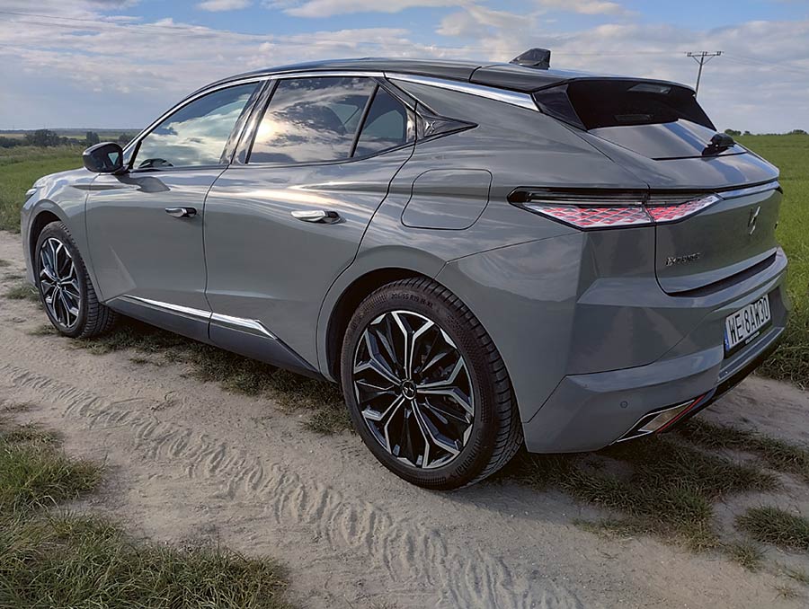 Do napędu testowanego modelu służył napęd hybrydowy w postaci benzynowego motoru o pojemności 1.6 litra i mocy 180 KM (250 Nm) oraz jednostki elektrycznej o mocy 110 KM (320 Nm). Łączna moc tego duetu to 225 KM, które są przenoszone na przednią oś za pomocą 8-biegowej przekładni automatycznej. Bateria ma pojemność 12,4 kWh netto, co powinno wystarczyć na przejechanie 55 kilometrów w warunkach idealnych. W rzeczywistości na samym prądzie da się pokonać ok. 40 km. Hybrydowy napęd zapewnia przyzwoite osiągi. DS 4 pierwszą setkę osiąga po 7,7 sekundach i może się rozpędzić do ponad 230 km/h. W teście w cyklu mieszanym auto paliło ok. 6,5 do 7 litrów benzyny na 100 km.