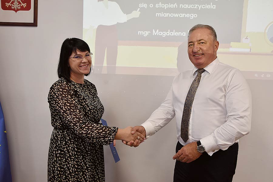 Przed komisją stanęła Magdalena Uryniuk, nauczyciel wychowania przedszkolnego ze Szkoły Podstawowej im. Róży Marii Zamoyskiej w Różance. Okazało się, że z powodzeniem przystąpiła do egzaminu na kolejny stopień awansu zawodowego. – To wielki sukces i potwierdzenie jej profesjonalizmu oraz zaangażowania w codzienną pracę z najmłodszymi uczniami. Awans zawodowy to nie tylko formalność. To także dowód na stały rozwój, dbałość o jakość kształcenia i gotowość do podejmowania nowych wyzwań w pracy dydaktycznej naszej całej kadry – mówi Agnieszka Bilicz-Lejko, dyrektor Szkoły Podstawowej w Różance i szefowa Magdaleny Uryniuk.