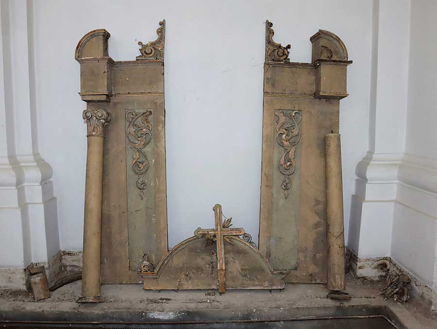 – Tylko wprawne oko mogło dostrzec niewielkie rysy na tynku wyznaczające obrys wnęki – informują przedstawiciele chełmskiej delegatury WUOZ. – Powstanie kapsuły czasu związane było z ostatnim kompleksowym remontem cerkwi zrealizowanym w drugiej połowie lat siedemdziesiątych ubiegłego wieku. W chwili rozpoczęcia remontu zdewastowanego wnętrza cerkwi zdeponowano w niej elementy wyposażenia sakralnego rzymskokatolickiej kaplicy szkolnej pod wezwaniem św. Mikołaja z lat 20. XX w. Był to niekompletny ołtarz główny oraz drewniany krucyfiks umieszczony pierwotnie na łuku tęczowym. Odsłonięcie kapsuły czasu było czynnością prostą. Po zdemontowaniu przesłony ukazała się zamurowana wnęka z drzwiami. Po otworzeniu drzwi z wnęki wyjęto elementy przedwojennego ołtarza głównego, krucyfiks oraz worek z niekompletnym szkieletem zwierzęcym.