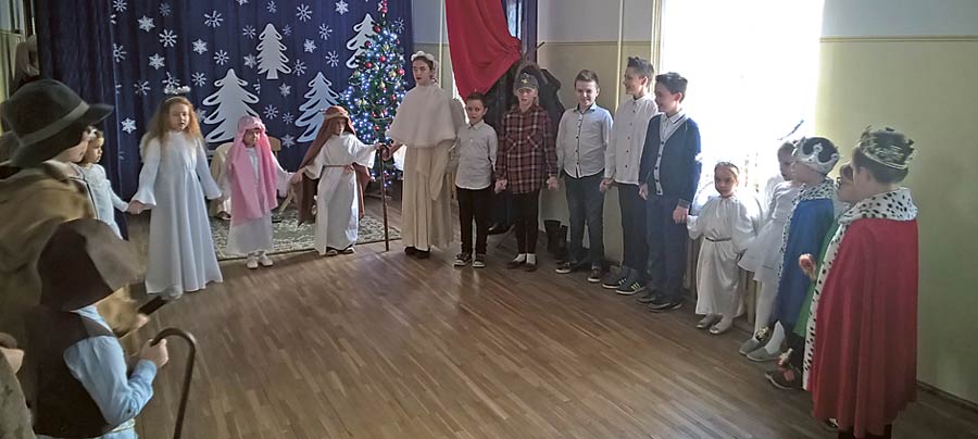 Takiego oblężenia niewielka szkoła jeszcze nie przeżyła. Mimo że na korytarz wystawiono wszystkie krzesełka, niektórzy oglądali swoje pociechy na stojąco. Jednak nikt z tego powodu nie utyskiwał, bo dzieciaki przygotowały się do występu perfekcyjnie. Najpierw wystąpiły w jasełkach, potem były recytacje i występy taneczne.