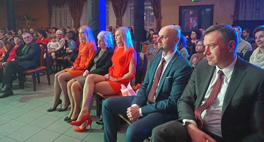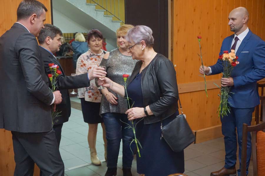 Wszystkie przybyłe na spotkanie panie zostały powitane przez wójta kwiatami i lampką szampana. Uroczystość rozpoczął prowadzący Bogdan Smolik, zapraszając na scenę wójta gminy Urszulin, który złożył mieszkankom gminy życzenia z okazji ich święta. Do życzeń dołączył się także zaproszony na tę okazję starosta włodawski Andrzej Romańczuk.