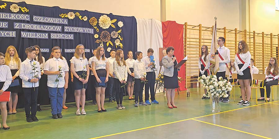 Ten ważny dla społeczności szkolnej dzień swoim występem uświetniła uczennica klasy ósmej Julia Sobstyl, która zagrała na skrzypcach. Następnie dzieci przygotowane przez Urszulę Dorosz pochwaliły się swoimi umiejętnościami tanecznymi. Przepiękną dekorację przygotowały: Ewelina Jasina-Studzińska i Elżbieta Jasina. (k)
