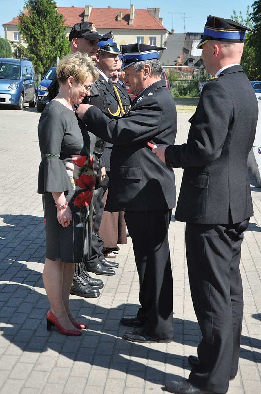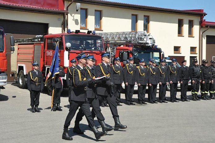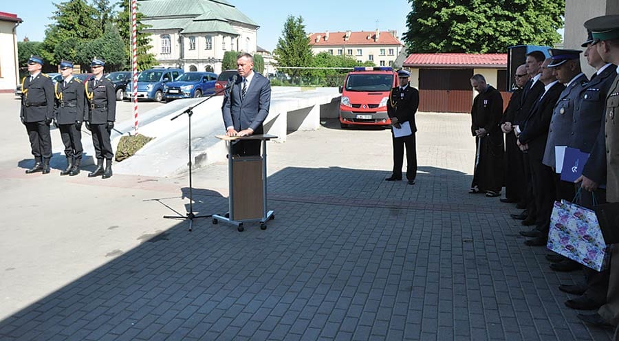 (11 maja) Uroczystość rozpoczęła się meldunkiem złożonym komendantowi wojewódzkiemu Państwowej Straży Pożarnej – st. bryg. Grzegorzowi Alinowskiemu przez zastępcę komendanta powiatowego – kpt. Andrzeja Łosia. Następnie komendant wojewódzki dokonał uroczystego przywitania sztandaru i pododdziału złożonego z funkcjonariuszy naszej jednostki. Nadano również awanse, odznaczenia i wyróżnienia.