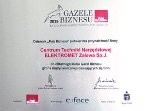 „Gazele Biznesu” to ranking organizowany od szesnastu lat przez „Puls Biznesu”, uwzględniający najdynamiczniej rozwijające się małe i średnie firmy. „Gazele” przyznawane są przedsiębiorstwom, które dzięki prężnemu rozwojowi doskonale dają sobie radę na rynku i śmiało mogą rywalizować nawet z większymi konkurentami. W tym roku w gronie wyróżnionych znalazła się także chełmska firma Elektromet.