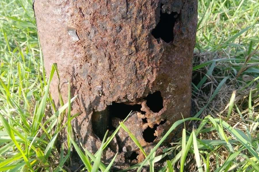 – Mniej więcej 1/3 średnicy słupa to dziury na wylot, przez które widać biegnące w środku kable pod napięciem. To grozi przebiciem i porażeniem np. ciekawskiego dziecka, a dodatkowo sama latarnia zaczyna się chwiać i istnieje ryzyko, że się przewróci – zaalarmował nas jeden z Czytelników. – W fatalnym stanie jest również stojący nieopodal betonowy słup przy ul. Kuronia, w który niedawno uderzył samochód.