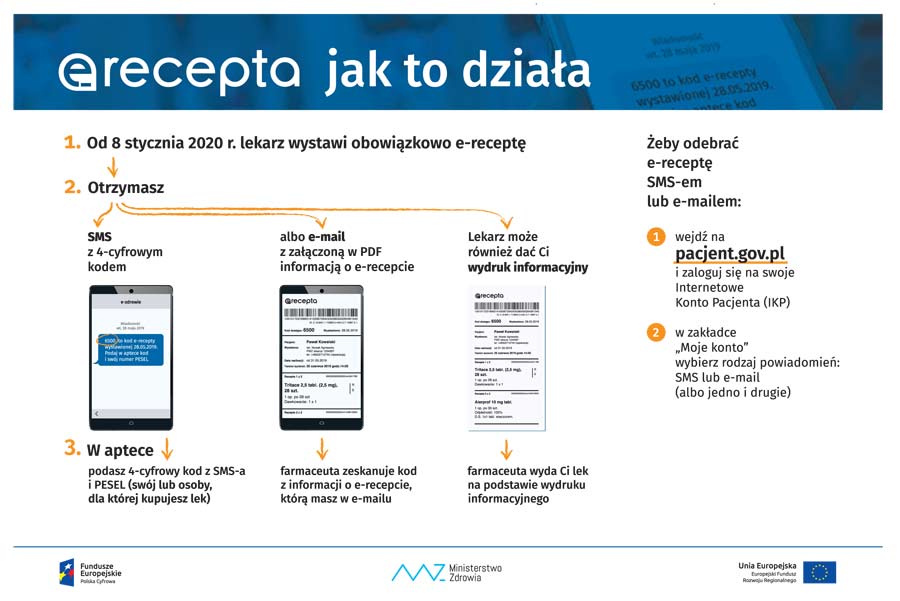 To cyfrowa postać tradycyjnej papierowej recepty, która od 8 stycznia 2020 r. będzie obowiązkowa. Otrzymujemy ją w postaci wydruku informacyjnego lub SMS i e-maila, jeśli aktywowaliśmy swoje Internetowe Konto Pacjenta na pacjent.gov.pl i dodaliśmy tam nasze dane kontaktowe.