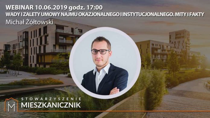 Spotkanie w sieci odbędzie się dzisiaj (10 czerwca) o godzinie 17. Podczas webinaru Michał Żółtowski mówić będzie o faktach i mitach związanych z umowami najmu okazjonalnego i instytucjonalnego.
