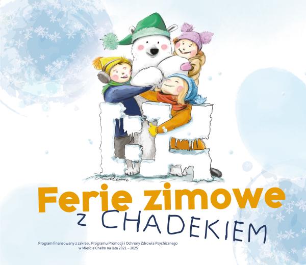 Chełmski Dom Kultury zaprasza 5-9 lutego na „Ferie zimowe z Chadekiem 2024”. W tych dniach w programie będą codziennie bezpłatne filmy i zajęcia artystyczne dla dzieci w wieku 7-12 lat. Zapisy na warsztaty od 29 stycznia na recepcji ChDK (tel. 82 563 00 81) – liczba miejsc ograniczona. Program finansowany z zakresu Programu Promocji i Ochrony Zdrowia Psychicznego w Mieście Chełm na lata 2021 – 2025.