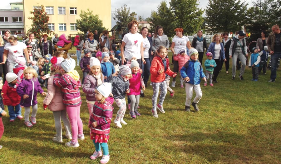 Nie obyło się bez zabaw tanecznych rozganiających chmury, słonecznego malowania twarzy, malowania kredą na papierze, poszukiwania jesiennych liści ukrytych na placu z niespodzianką w środku oraz podróży pociągiem po placu przedszkolnym, który napotkał na swojej drodze tor przeszkód. Uwieńczeniem zabawy stały się rzuty do celu, a wielką niespodzianką losowanie nagród za „strzał w 10”. Trenerka fitness Magdalena Hładun w ciągu kilkuminutowego pokazu swoją witalnością i zamiłowaniem do sportu zaraziła aerobikiem nie tylko dzieci, ale również rodziców, o czym mogła świadczyć wysoka frekwencja i uśmiechy na twarzach. Kolejni goście – grupa MMA Pankration Włodawa zaprezentowali swoje umiejętności na macie, wzbudzając wielkie zdziwienie i zachwyt w oczach przedszkolaków. W ramach festynu został zorganizowany również konkurs kulinarny pt. „Zdrowa przekąska”. Jury – w składzie: Jolanta Karpiuk – dyrektor MPI, Teresa Zaleńska-Sak – dyrektor MOSiR we Włodawie oraz Hubert Ratkiewicz – prezes MPGK we Włodawie – po degustacji wszystkich dań, podjęło jednogłośną decyzję o nagrodzeniu wszystkich oddziałów przedszkolnych I miejscem. Werdykt jury został przyjęty z aplauzem, a nagrody wzbudziły radość wśród uczestników.