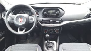 We wnętrzu od razu czuć bliskie konotacje Fiata z Jeepem. Świetnie widać to na przykładzie idealnie okrągłej kierownicy z wypukłą częścią środkową, na której przyciski do regulacji głośności umieszczono nie na, a pod ramionami kierownicy. Relatywnie niska cena tego samochodu skądś musiała się wziąć, więc w kabinie nie spodziewajmy się fajerwerków stylistycznych – wnętrze jest ciemne i bardzo proste, ale za tą prostotą, przy odrobinie dobrej woli, da się dopatrzyć nieco elegancji. Konstruktorzy przy budowie wnętrza nie sięgali po materiały na najwyższe półki magazynów, ale nie oznacza to, że w Tipo coś trzeszczy czy stuka. Przeciwnie, deska rozdzielcza jest bardzo dobrze spasowana. Ergonomia stoi na bardzo wysokim poziomie – przycisków i pokręteł jest mało, są duże i dobrze opisane, a wszystkimi funkcjami auta steruje się intuicyjnie. Fotele posiadają wystarczający zakres regulacji, z tyłu spokojnie zmieszczą się trzy dorosłe osoby, które nie będą też narzekać na brak miejsca na kolana, czy stopy. Do tego kufer Tipo ma pojemność aż 520 litrów, co jest wartością godną pochwały.