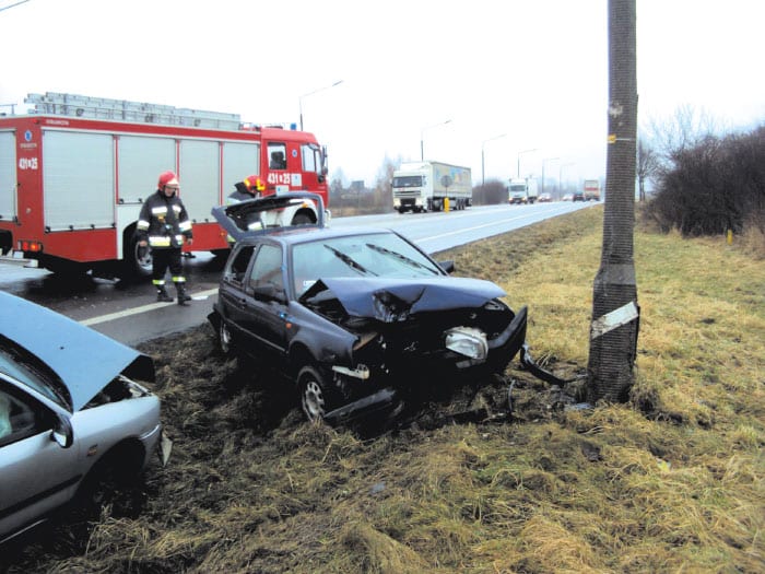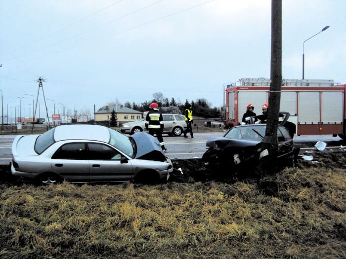Do scen rodem z filmu doszło 29 stycznia tuż przed 10.00. Kierujący Volkswagenem Golfem, wyjeżdżając z drogi podporządkowanej na krasnostawską obwodnicę, nie ustąpił pierwszeństwa prawidłowo jadącemu pojazdowi marki Mitsubishi. – Kierujący nim 42-letni mieszkaniec Lublina nie zdołał wyhamować i uderzył w tył Volkswagena – opowiada Piotr Wasilewski, rzecznik krasnostawskiej policji. – Siła uderzenia była tak duża, że wyrzuciła auto z jezdni wprost na przydrożną latarnię. Pojazd został wybity do góry i uderzył w nią na wysokości niemalże 3 metrów nad ziemią – dodaje. Co ciekawe całe zajście miało miejsce na oczach patrolujących ten rejon policjantów krasnostawskiej drogówki. – Mundurowi od razu udzielili uczestnikom zdarzenia pierwszej pomocy. Na miejscu interweniowało też pogotowie ratunkowe, straż pożarna i pogotowie energetyczne – mówi Wasilewski. Na szczęście kierującemu Volkswagenem 19-latkowi z gminy Krasnystaw nic poważnego się nie stało. 42-latek z Lublina również doznał jedynie ogólnych potłuczeń. Obydwaj mężczyźni podróżowali sami i byli trzeźwi. – Z uwagi na fakt, że kierujący Volkswagenem swoim zachowaniem stworzył realne zagrożenie życia dla i zdrowia kierowcy Mitsubishi i innych uczestników ruchu drogowego, policjanci zatrzymali mu prawo jazdy oraz skierowali przeciwko niemu wniosek o ukaranie do sądu – informuje rzecznik krasnostawskiej policji.(kg)