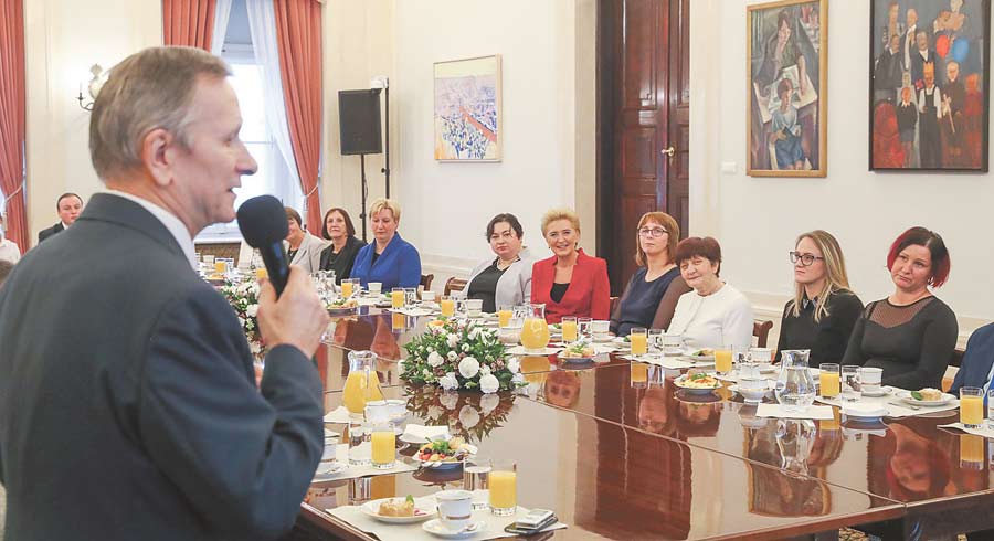 Goście zwiedzili Pałac Prezydencki, a następnie wzięli udział w spotkaniu. Panie mówiły o podjętych na rzecz mieszkańców inicjatywach, wspólnym spędzaniu czasu, wzajemnym wsparciu i bliskich relacjach, które pielęgnują. Podkreślały, że współczesne organizacje dbają o dawne tradycje i zwyczaje, popularyzując dziedzictwo kulturowe regionu, ale też pobudzają aktywność mieszkańców, integrują przedstawicieli wszystkich pokoleń, dają okazję do rozwoju, nauki i zabawy w przyjaznej, niemal rodzinnej atmosferze.