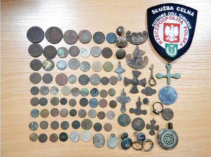 W wytypowanej wcześniej przez pograniczników do szczegółowej kontroli kii na ukraińskich numerach rejestracyjnych ujawniono zabytkowe przedmioty. Łącznie 27 artefaktów o charakterze militarnym i religijnym (m.in. guziki wojskowe, Krzyż Opołczenia Mikołaja II, medaliki i krzyżyki prawosławne) oraz 69 monet (np. boratynki Jana Kazimierza, kopiejki Katarzyny II, grosze Stanisława Augusta Poniatowskiego). Stan wielu z nich wymaga interwencji konserwatorskiej.