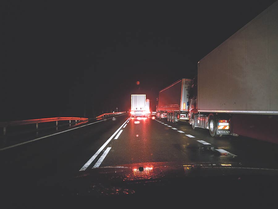 Normą jest przeciskanie się obok ciągu zaparkowanych na poboczu ciężarówek przez inne. Na porządku dziennym są wystające aż po środkową linię rozdzielającą kierunki jazdy naczepy, bo kierowcy zestawów znaleźli wnękę w kolejce, ale nie na tyle długą, by schować w niej cały zestaw. Ale i na to znajdują rozwiązanie w postaci magicznego przycisku świateł awaryjnych, które służą oczywiście do czego innego.