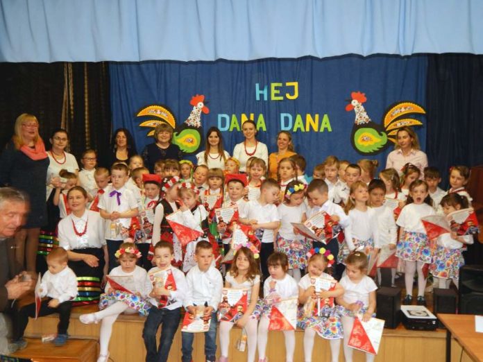 Dzieci tańczyły na ludową nutę, ubrane w piękne tradycyjne stroje. Dziewczynki miały na sobie białe bluzki i kolorowe spódnice, na szyi korale, we włosach wstążki, a głowy zdobiły im wianki z kolorowych kwiatów. Chłopcy ubrani byli w białe koszule. Najmłodsi ku uciesze licznie zgromadzonych na widowni: rówieśników, rodziców, dziadków i członków osiedlowego Klubu Seniora zatańczyli: „Kowala”, „Szota”, „Maryneczkę”, „Krakowiaka”, „Trojaka”, „Owczareczka” oraz „Polkę lubelską”.