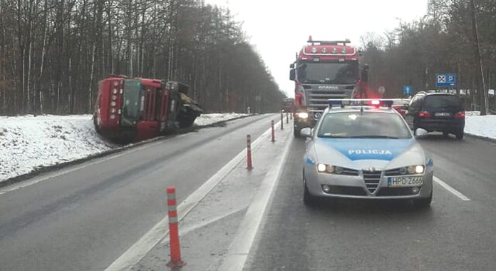 Nie popisali się dwaj kierowcy ciężarówek z powiatu siedleckiego. Jeden holował drugiego po drodze krajowej nr 17, w efekcie czego wielka scania wylądowała w przydrożnym rowie.