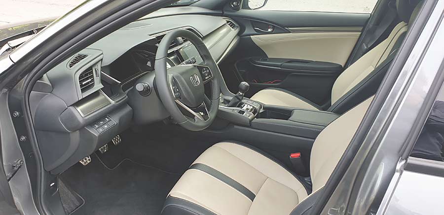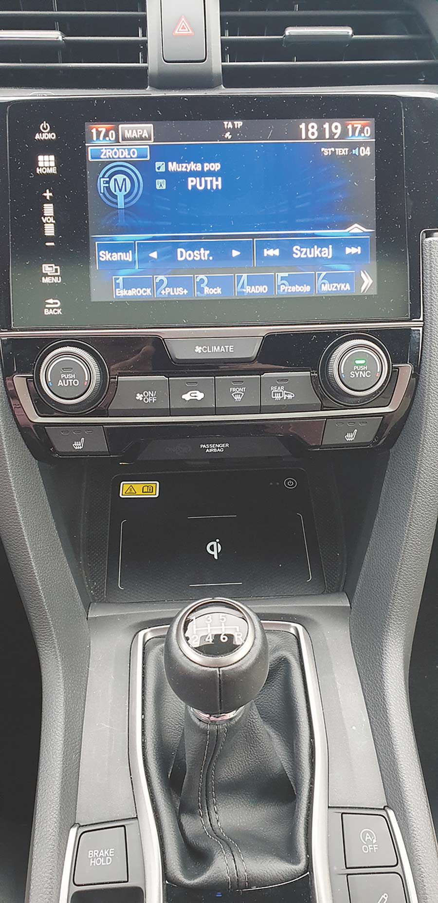 Jak to w Hondzie – materiały są czarne lub bardzo ciemne – na szczęście rozjaśnia je kremowa skóra, którą obszyto siedzenia. Mam wrażenie, że materiały są nieco gorszej jakości, niż to było w przypadku poprzedniej wersji Civica, który pod tym względem w segmencie zdecydowanie się wyróżniał. Teraz jest dobrze, ale konkurencja też nie pozostaje w tyle. Na słowa uznania niezmiennie zasługuje ergonomia. Wszystko jest na swoim miejscu, przycisków i pokręteł jest mało, a wszystkie znajdują się w zasięgu ręki kierowcy.