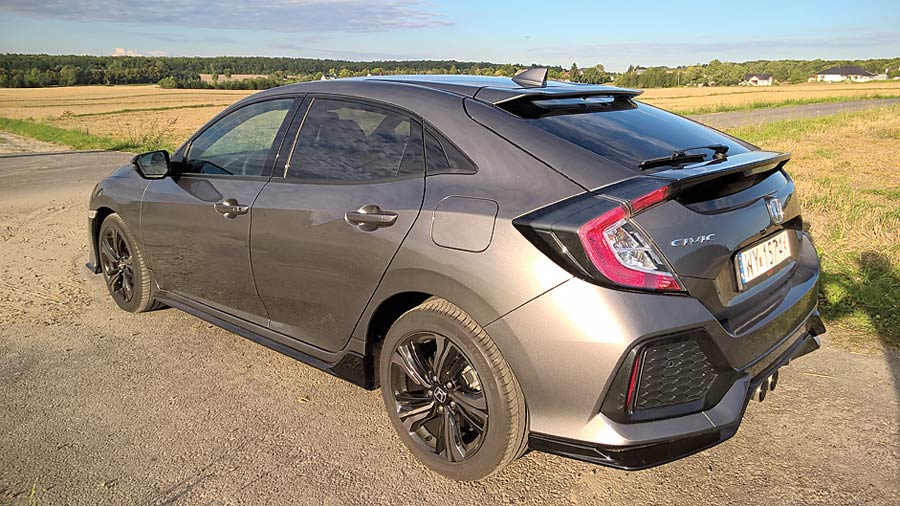 Pod maską testowej Hondy pracował benzynowy silnik o pojemności 1,5 l i mocy 182 KM, który generuje 220 Nm maksymalnego momentu obrotowego. Brzmi obiecująco. Tyle tylko, że tej mocy w aucie… nie czuć. Nie tak dawno temu jeździłem podobną Hondą, tyle tylko że z manualną skrzynią biegów i tamten egzemplarz wydawał mi się o wiele szybszy. No cóż, z bezstopniową przekładnią CVT frajda z jazdy Civiciem jest o wiele mniejsza. Auto pierwszą setkę łapie po 8,5 s i może rozpędzić się do 200 km/h. Średnie spalanie w cyklu mieszanym to ok. 8 litrów bezołowiówki na 100 km.