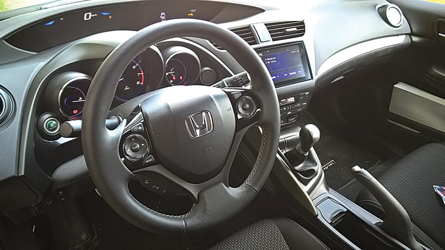 Testowe auto napędzała benzynowa jednostka o mocy 142 KM i maksymalnym momencie obrotowym wynoszącym 174 Nm. Dzięki niemu pierwsza „setka” na liczniku powinna pojawić się po ok. 9 sekundach. W rzeczywistości wrażenia z jazdy są dużo mniej satysfakcjonujące i tych osiągów wcale nie czuć – być może dlatego, że silnik ożywia się dopiero na wysokich obrotach. Jego mocną stroną natomiast jest prosta konstrukcja i umiarkowany apetyt na paliwo. Testowy model wyposażony był w funkcję Start-Stop oraz w ekologiczny tryb jazdy tzw. ECON, który oprócz tego, że skutecznie „zamula” silnik, przynosi też oszczędności w postaci niespalonej benzyny. W czasie testu auto paliło średnio 7,5 litra PB 95 na 100 km, chociaż producent zapewnia, że Civic powinien zadowolić się 6,1 L/100 km. Trzeba jednak przyznać, że i taki wynik jest godny pochwały. Za przeniesienie napędu w tym aucie odpowiada manualna skrzynia biegów. Wszystkie jej 6 przełożeń zestopniowano bardzo dobrze – biegi wchodzą gładko i niezwykle precyzyjnie, a idealne wręcz usytuowanie lewarka wprost zachęca do jak najczęstszej zmiany przełożeń.