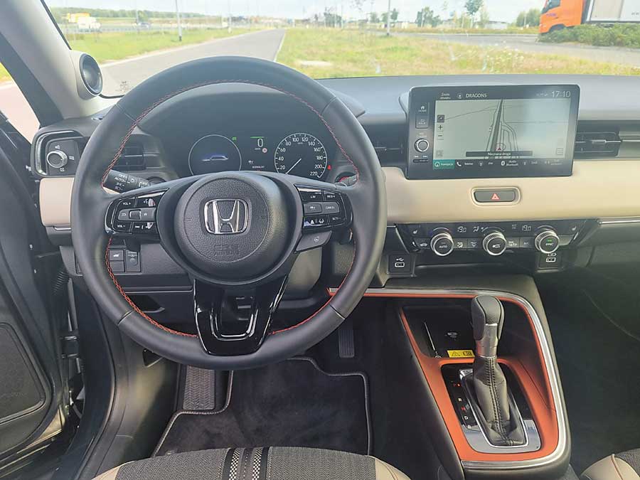 Do napędu testowej Hondy zaprzęgnięto tzw. miękką hybrydę. Składają się na nią: motor benzynowy o pojemności 1,5 litra oraz dwa silniki elektryczne. Zestaw generuje 131 KM i działa tak, że głównym źródłem napędu jest elektryk, zaś motor spalinowy pełni funkcję pomocniczą i ładującą baterie. Tak dzieje się oczywiście tylko przy niskich prędkościach. Na trasie pałeczkę przejmuje benzyniak. Ten rodzaj napędu kapitalnie sprawdza się w mieście, gdzie auto może w pełni pokazać wszystkie swoje atuty: daje możliwość jazdy w trybie w pełni elektrycznym, jest bardzo ciche, w miarę zrywne i co najważniejsze, bardzo mało pali, nawet poniżej 5 litrów benzyny. Sytuacja zmienia się w trasie. Na szybkich drogach w kabinie robi się głośno, a apetyt na paliwo rośnie nawet do 8 litrów.