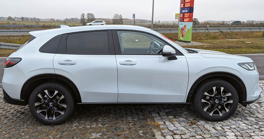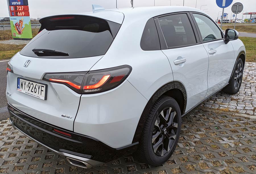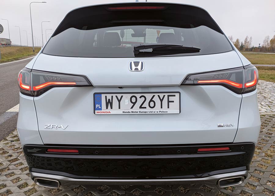 Z zewnątrz ZR-V prezentuje się bardzo przyjemnie. Choć w bryle nadwozia ciężko dopatrzeć się jakichś stylistycznych fajerwerków czy oryginalnych rozwiązań, to trzeba przyznać, że auto jest ładne i całkiem zgrabne. Z przodu w oczy rzucają się skośne i wąskie reflektory oraz mocno zabudowany na podobieństwo elektryków grill. Dół zderzaka jest wysunięty do przodu, zaś progi i nadkola są chronione plastikowymi nakładkami. Z tyłu mamy klasykę współczesnej motoryzacji w postaci dzielonych LED-owych świateł i mocno ściętą linię dachu z dużym spojlerem oraz dwie końcówki wydechu.