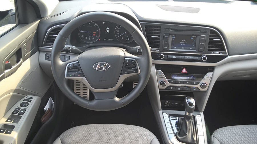 Elantrę napędzać mogą dwa silniki – benzynowy i diesel o takiej samej pojemności wynoszącej 1,6 l. Pod maską wersji testowej znalazła się ta druga jednostka o mocy 136 KM, którą sprzęgnięto z automatyczną, 7-biegową skrzynią. Do pierwszej setki auto rozpędza się w 11 s i może jechać z maksymalną prędkością równą 190 km/h. Na papierze te wartości nie powalają, ale odczucia z jazdy są zupełnie inne. Czuć, że auto jest dynamiczne i start do 70, 80 km/h trwa bardzo krótko. Bardzo fajnie pracuje automat, który przełożenia zmienia niemal niezauważalnie, a przy potrzebie redukcji ociąga się tylko chwilkę. W tym silniku zastosowano technologię o nazwie BluDrive. Dzięki niej zapotrzebowanie na paliwo jest więcej niż zadowalające, bo Elantra przy naprawdę dynamicznej jeździe nie powinna spalić więcej niż 6,5 l oleju, a przy delikatnym traktowaniu gazu spokojnie możemy zejść poniżej 5 l/100 km. Warto też wspomnieć, że auto oferuje trzy ustawienia trybu jazdy – zwykły, ekonomiczny oraz sportowy, które zmienia się za pomocą jednego przycisku przy lewarku.