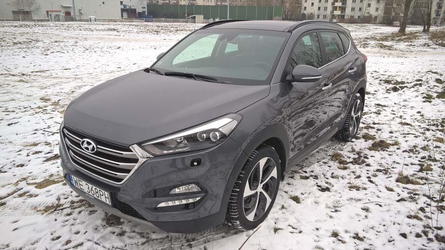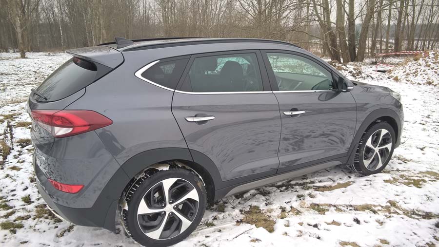 Pod maską testowego Hyundaia pracował najmocniejszy diesel dostępny dla tego modelu. Dwulitrowa jednostka krzesze 185 KM, które w połączeniu z 6-biegowym automatem zapewniają całkiem niezłe osiągi. Średnie spalanie wynosi ok. 8,5 litra oleju napędowego na 100 km. Tucson był wyposażony w napęd 4WD, który pozwala na uzyskanie 100% momentu obrotowego dla kół nawierzchni. Ręcznie wybierany Tryb Blokady rozdziela moment obrotowy w stosunku 50/50, więc tym Hyundaiem spokojnie można wjechać nawet w średniociężki teren.