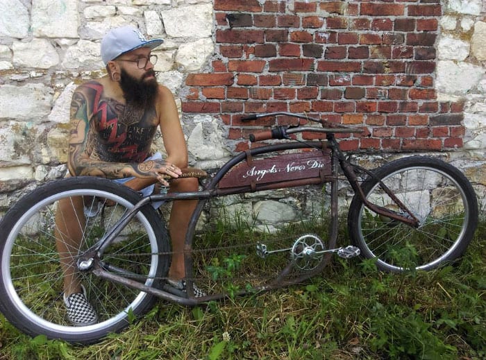 Zaczęło się kilka lat temu od… brody. To był pierwszy element nowego wizerunku Arnolda, który przystawał do jego roweru. Nie chodzi tu o zwykłego „górala”, ale efektownego choppera, z szerokimi oponami, nisko umieszczonym siedziskiem, mocno wysuniętym przednim kołem i z ogromną kierownicą. Takim jednośladem przemierzał Chełm i okolice, wzbudzając spore zainteresowanie wśród przechodniów.