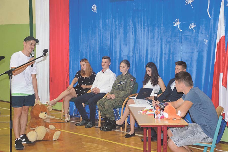 Uczniowie klas drugich Technikum w składzie: Marta Szadura, Wojciech Janicki, Dawid Skorek, Patrycja Kukiełka, Michał Oszust i Kacper Opat wprowadzili całą społeczność szkolną w radosny nastrój śmieszną inscenizacją. Weronika Zakrzewska zaprezentowała swój talent muzyczny, zaś nad obsługą techniczną czuwali Marcin Staszak i Jakub Żeliszczak. (k)