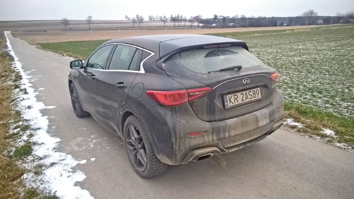 Pod maską testowego Infiniti pracował doładowany silnik benzynowy o pojemności 1,6 l i mocy 156 KM. Napęd tylko na przednią oś realizowany był poprzez 7-biegowy automat. Cóż można by rzec o tym duecie? Na pewno nie jest demonem prędkości, bo skrzynia pracuje dość ospale, no i mocy nie za wiele, ale do codziennej jazdy wystarczy. Spalanie też nie jest najmocniejszą stroną tego auta, bo średnio oscyluje w okolicach 9 litrów bezołowiówki, ale przecież to w końcu samochód klasy premium, więc przyjemność podróżowania nim swoje musi kosztować.