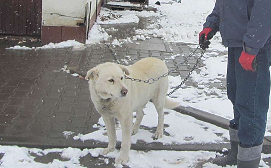 – Młodszy inspektor Ares to taki nasz pracownik i jego nigdy nie oddamy – mówi wójt. – Osiem lat temu został przywieziony z okolic Mołodutyna. Był źle traktowany, dlatego u nas dożyje w spokoju i o pełnej misce swoich lat. Mamy do niego szczególny sentyment.