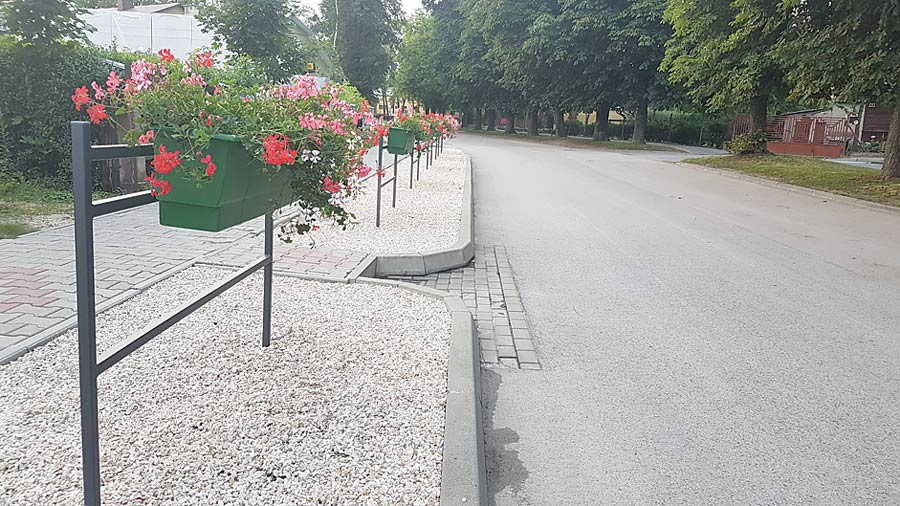 A niedawno wzdłuż ulicy Szkolnej pojawiły się metalowe konstrukcje, na których zawisły kwiatki w plastikowych doniczkach. O ile na park czy zagospodarowanie wokół szkoły gmina pozyskała unijne fundusze to za „kwiatki” zapłaciła z własnego budżetu.