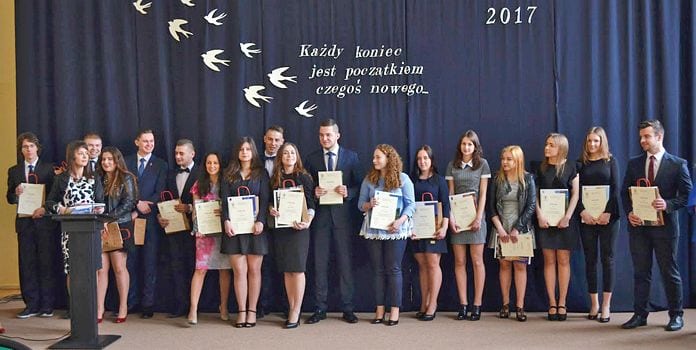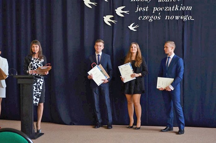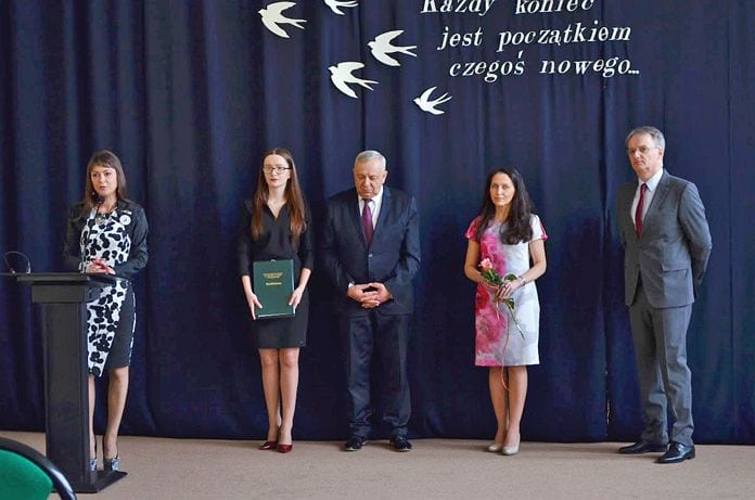 Za nami uroczysta akademia z okazji ukończenia szkoły przez uczniów klas trzecich I LO w Krasnymstawie. Na galę przybyli m.in.: starosta Janusz Szpak i przewodniczący rady rodziców Sławomir Figiel. W swoim wystąpieniu dyrektor I LO Edyta Fidecka dokonała podsumowała trzyletnią pracę młodzieży. W tym roku liceum ukończyło 96 uczniów, ze średnią ocen 3,77. Dyrektor wymieniła najlepszych z nich. Z klasy III „a”: Szymona Antoniaka, Igę Patejuk, Adriannę Chodorowską, Dominika Kondraciuka, Jakuba Sokoła, z III „b”: Natalię Sulowską, Kamilę Weremko, Igę Dziurkę, Kingę Galewską, Mateusza Krupę, a z klasy III „c”: Karola Ścibaka, Marylę Rewerską, Paulinę Cholewę, Elizę Cimek, Adama Frańczaka, Annę Rudnik i Macieja Szymaniaka. Ważnym punktem uroczystości było wręczenie Nagrody im. Jana i Heleny Stefańczyków – Steftleben najwybitniejszemu tegorocznemu absolwentowi I LO. Wyróżnienie to otrzymała Natalia Sulowska z III „b”. Po raz pierwszy nagrodzono uczniów nominowanych do tej nagrody. Szymona Antoniaka, Igę Patejuk, Kamilę Weremko i Karola Ścibaka uhonorowano pamiątkowymi statuetkami. Drugą część gali poprowadziła wicedyrektor Anna Patejuk. Podczas niej odbyło się ślubowanie uczniów klas programowo najwyższych, przekazanie sztandaru nowemu pocztowi sztandarowemu oraz jego zaprzysiężenie. Wicedyrektor Anna Król podziękowała dotychczasowym członkom pocztu sztandarowego: Adriannie Chodorowskiej, Patrykowi Wiąckowi, Martynie Marczewskiej, Natalii Sulowskiej, Kamili Weremko i Wiktorowi Kościukowi. Godnymi następcami wymienionych uczniów okazali się chorąży: Aleksandra Chałubińska, Marcela Zdybel, Michał Kostrzanowski, Agata Białek, Kamil Dzida oraz Paulina Kostrzanowska. (k)