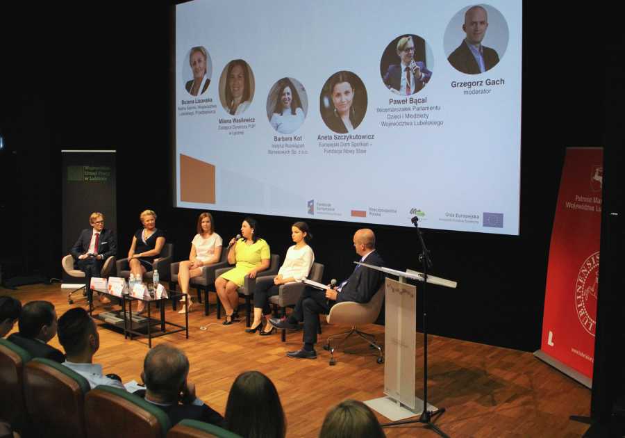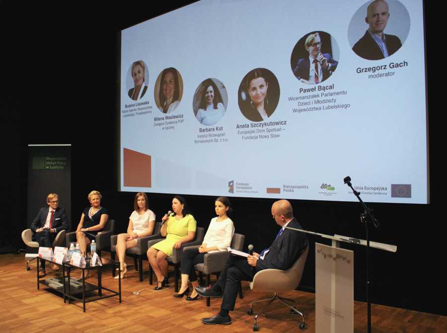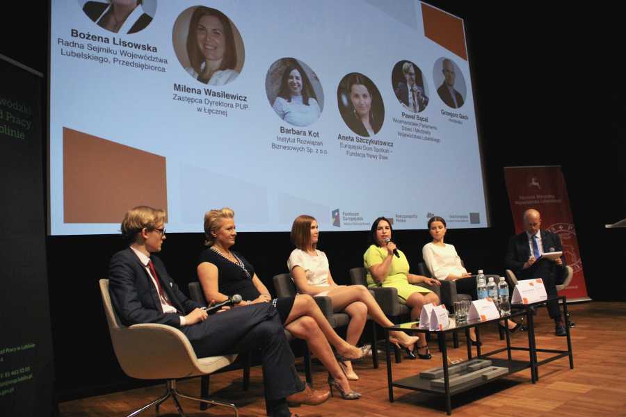 Uczestnicy seminarium, reprezentujący instytucje rynku pracy, stowarzyszenie zajmujące się wsparciem zatrudnienia, reprezentacja młodzieży z Komisji Doraźnej ds. Młodzieży WL oraz jej przewodnicząca Bożena Lisowska w panelu dyskusyjnym analizowali przyczyny takiego stanu rzeczy.