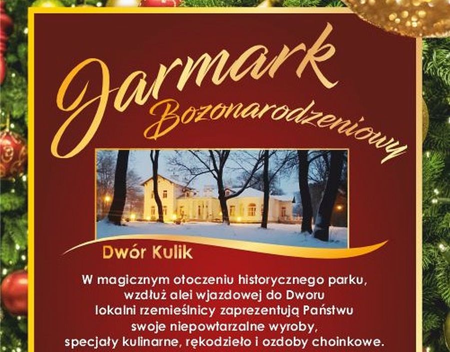 Jarmark rozpocznie się o godzinie 11.00 i potrwa do godziny 18.00. – W magicznym otoczeniu historycznego parku, wzdłuż alei wjazdowej staną drewniane domki, w których około 30 wystawców rękodzieła, ozdób świątecznych i specjałów kulinarnych zaprezentuje swoje niepowtarzalne wyroby – zachęcają organizatorzy. Odwiedzający jarmark w Kuliku będą mogli nie tylko kupić wyroby lokalnego rękodzieła, ale wziąć udział w koncercie utworów świątecznych w wykonaniu chełmskiego studia wokalnego Głosu Warte (o 16.30 w kaplicy sąsiadującej z dworem). Od 13.00 do 15.00 na atrakcje mogą też liczyć najmłodsi, z którymi Katarzyna Kasprzak, animator zabaw poprowadzi warsztaty.