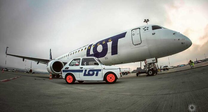 Na lotnisku w podkrakowskich Balicach odbyła się wyjątkowa sesja. W rolach głównych wystąpili: Fiat 126 PLL LOT z 1987 r. w oryginalnym malowaniu samochodu służbowego pracowników polskich płyt lotniskowych z lat 80. oraz samoloty rejsowe PLL LOT – Embraer 195 i Bombardier Q400.