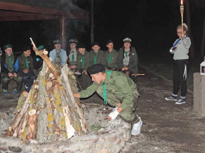 Następnie odbyło się ognisko obrzędowe ze złożeniem przyrzeczenia harcerskiego. Gośćmi harcerzy byli: wicestarosta Adam Panasiuk, wójt Urszulina Tomasz Antoniuk oraz Sylwester Adamski, dyrektor Zespołu Szkół w Urszulinie. Na koniec harcerze z 7 DH „Bagienne Żurawie” pod opieką dh Iwony Lewandowskiej, zuchowie z 5GZ „Poleskie Żółwiki” pod opieką pwd Barbary Martysiuk i ich rodzice złożyli uroczyste przyrzeczenie. (b)