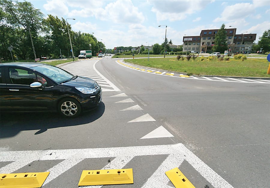 Na każdym wlocie na skrzyżowanie zostały również wydzielone cztery wysepki. Przedstawiciele powiatu tłumaczyli, że postawili na rondo turbinowe, bo takie rozwiązanie sprawdziło się już na drodze dojazdowej do lotniska. Na tej trasie w okolicy skrzyżowań niemal w ogóle nie dochodzi do wypadków i kolizji.