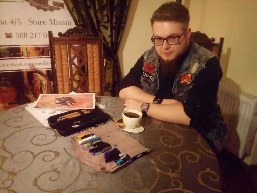 Z okazji Weekendu Księgarni Kameralnych w czwartek, 25 kwietnia, w Księgarni&Kawiarni „Między Słowami” w Lublinie odbył się wernisaż prac i spotkanie z Adamem Porębą, lubelskim kaligrafem.