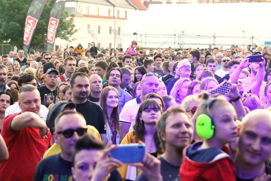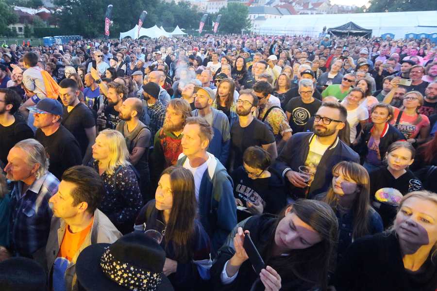 Przed estradą miała miejsce główną liczna mobilizacja „wojowników” punk-rocka, bo na scenę wychodzi Dezerter. Zespół działa blisko 40 lat, to emanacja buntu młodzieży stanu wojennego – wówczas pierwotną nazwę, SS-20 zastąpiła obecna. Z dawnego składu grają tu dwaj muzycy i obecnie, moim zdaniem, nie brzmi to już tak wymownie jak niegdyś. Stare, zadziorne hity zespołu tworzą teraz lawinę dźwięku z dominantą basu, która męczy. Na koncertowej łączce Dezerter był nie do zniesienia. To jedynie 2 gitary i perkusja, lecz ciężar gatunkowy taki, że niektórzy po kwadransie opuszczali tę „strefę zgniotu”. Dezerter i tak szedł za nimi po uliczkach Starówki. Sprawił, że nawet tam, w piwnych ogródkach drżały szklanki… Ktoś spytał przytomnie: – To „inne brzmienia” czy jakieś tsunami? – bo wtedy dewiza czerwcowego festiwalu pod nim się zachwiała. Lecz przejściowo…