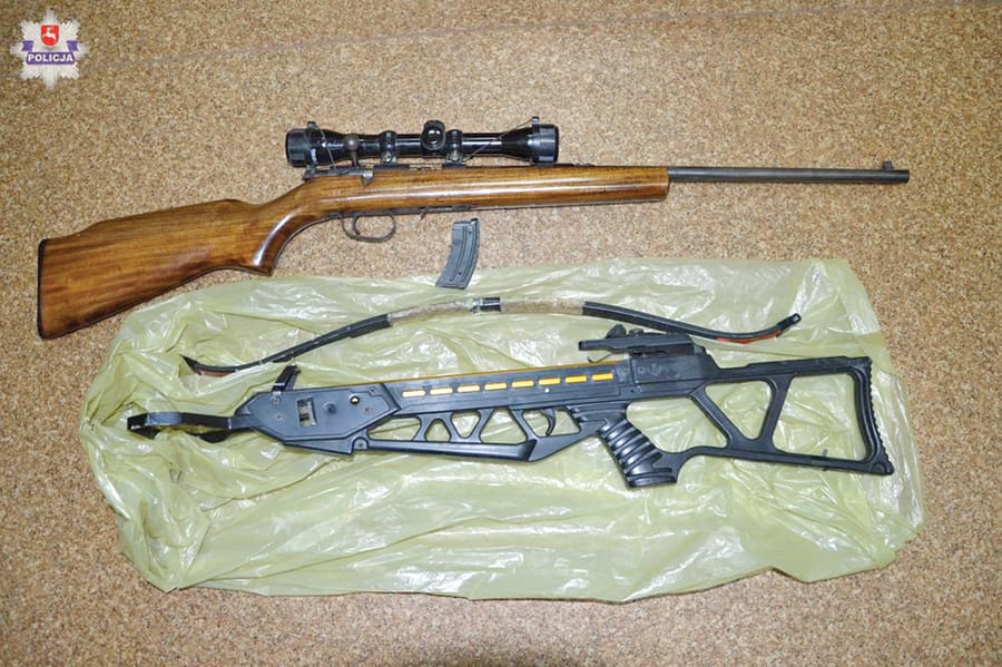 Nawet 8 lat więzienia grozi 57-letniemu mieszkańcowi gminy Wola Uhruska, który w łóżku trzymał nielegalną broń – kuszę, nabój i karabin kbks. Policjantom tłumaczył, że arsenał dostał tylko na przechowanie i nie wiedział, że musi mieć na to odpowiednie papiery.